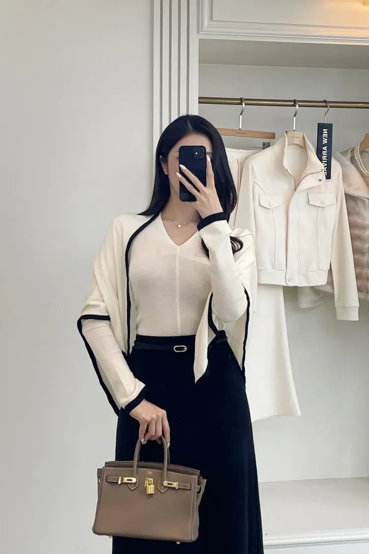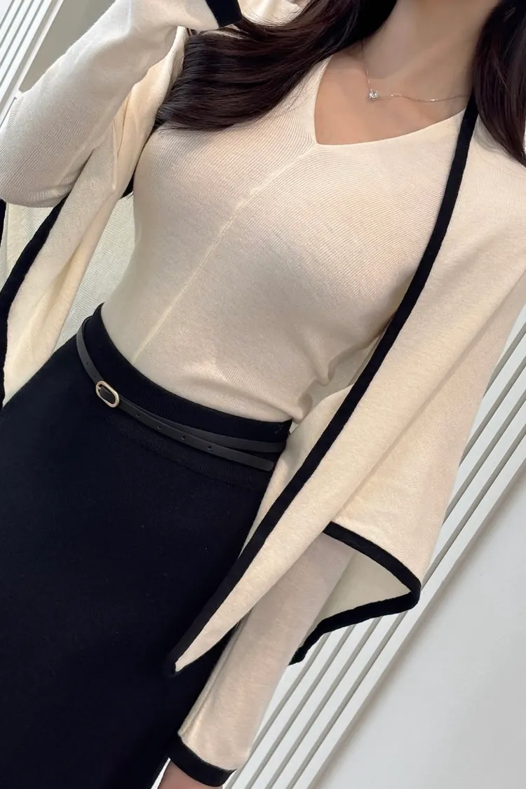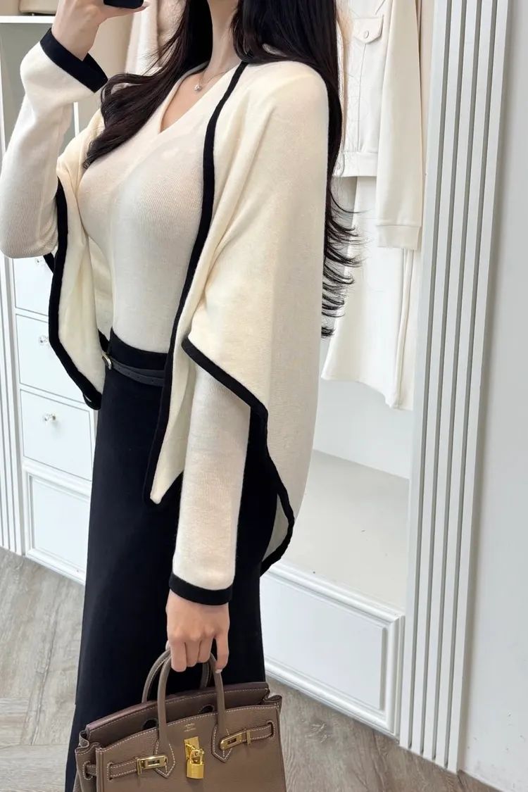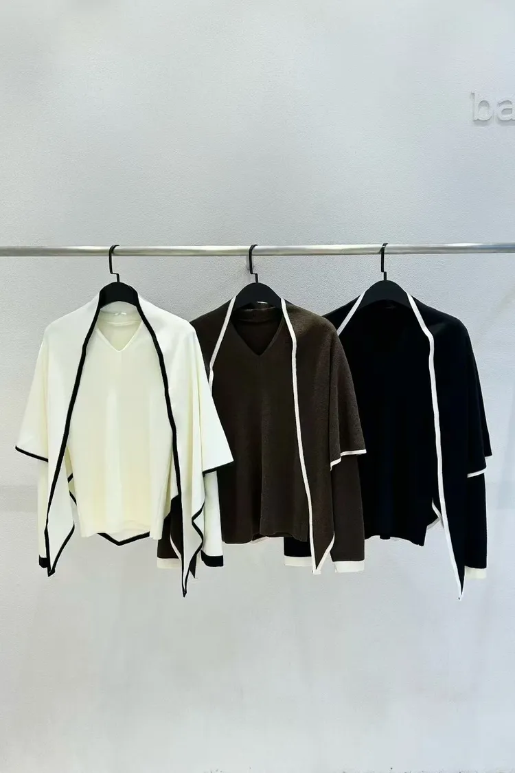 V領針織衫+三角披肩
