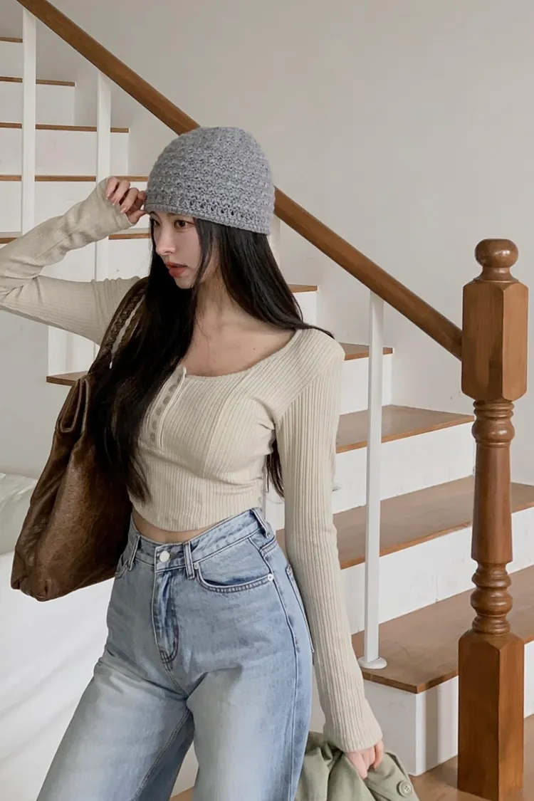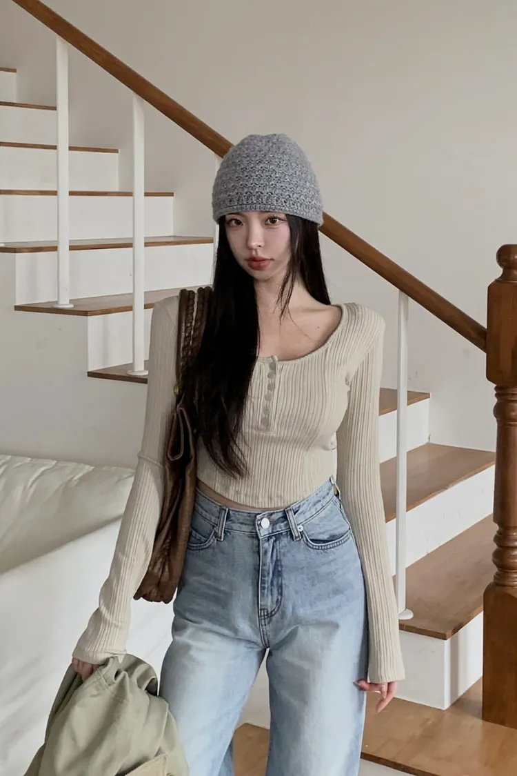 U領螺紋上衣