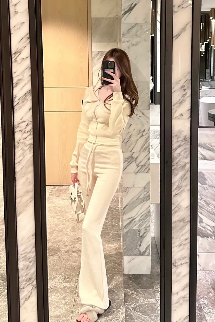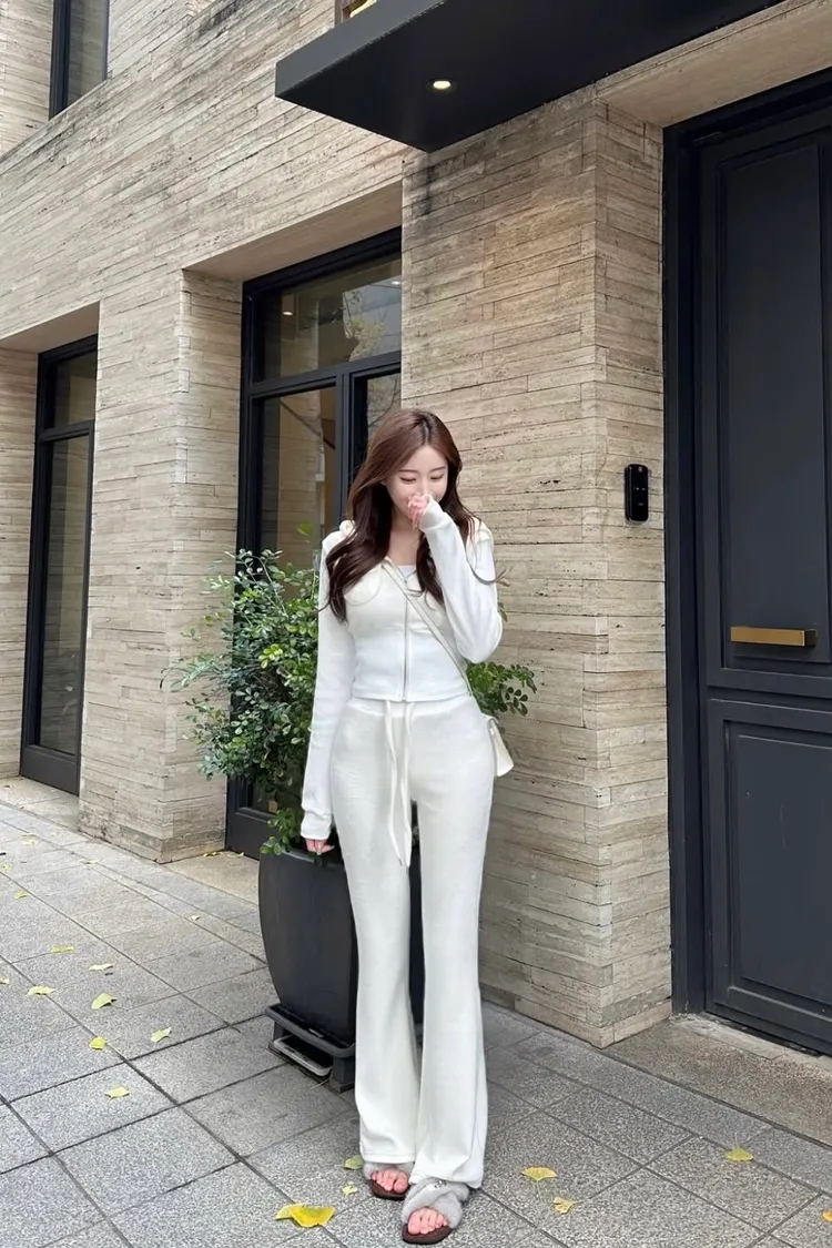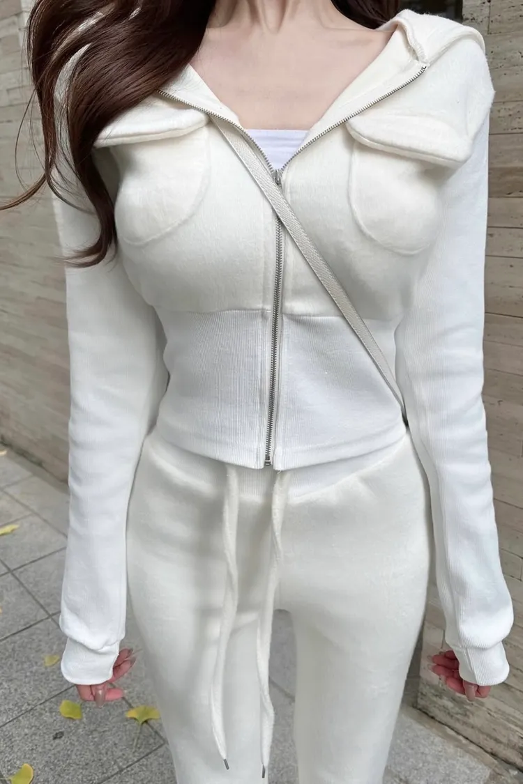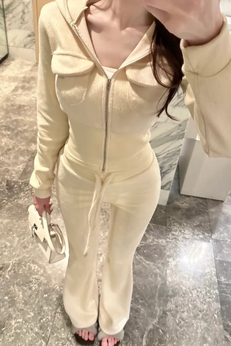 毛絨短板連帽外套+鬆緊長褲