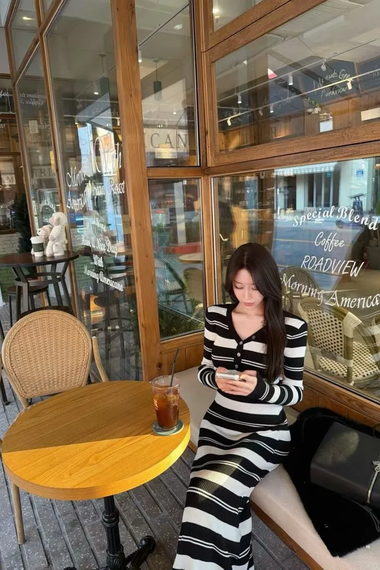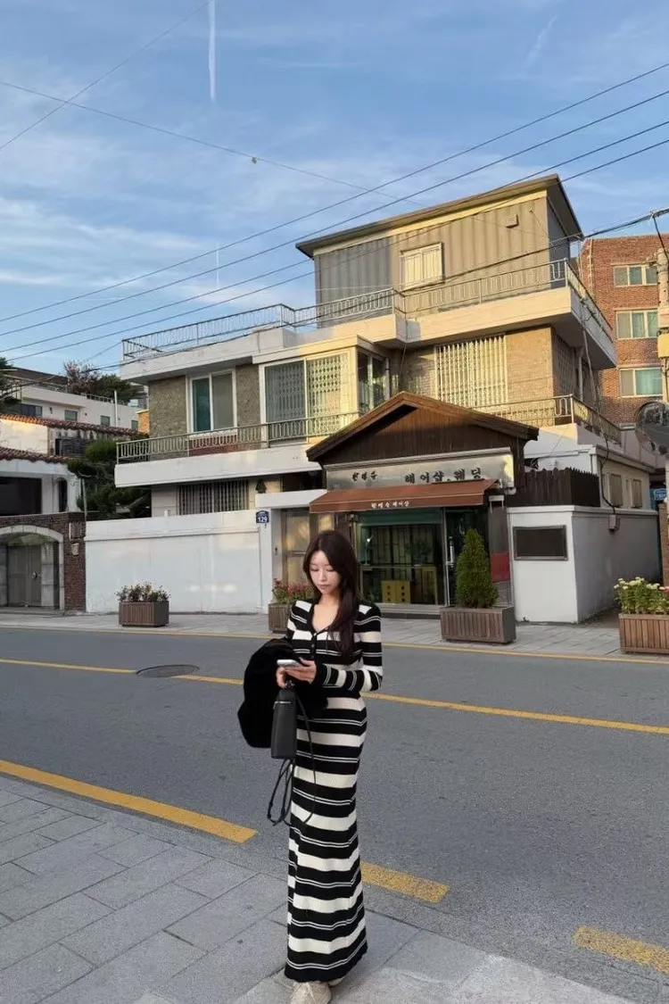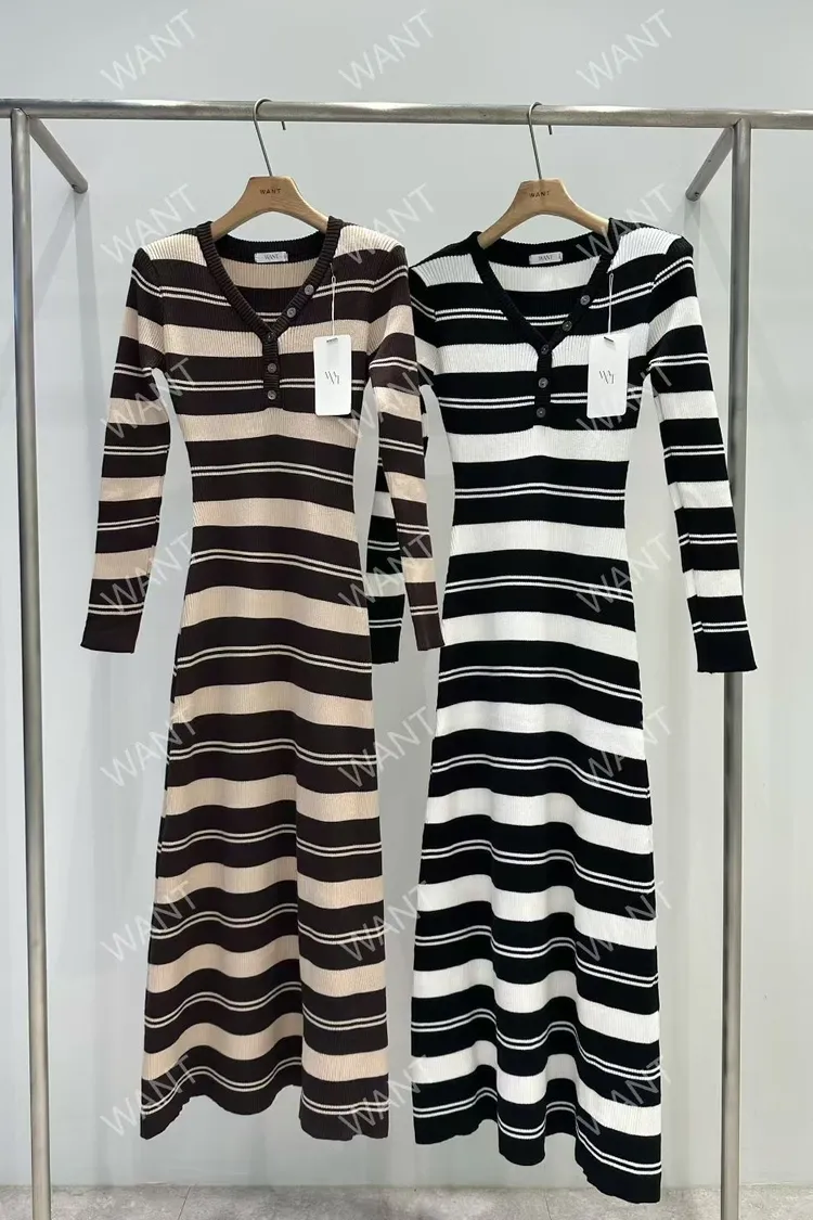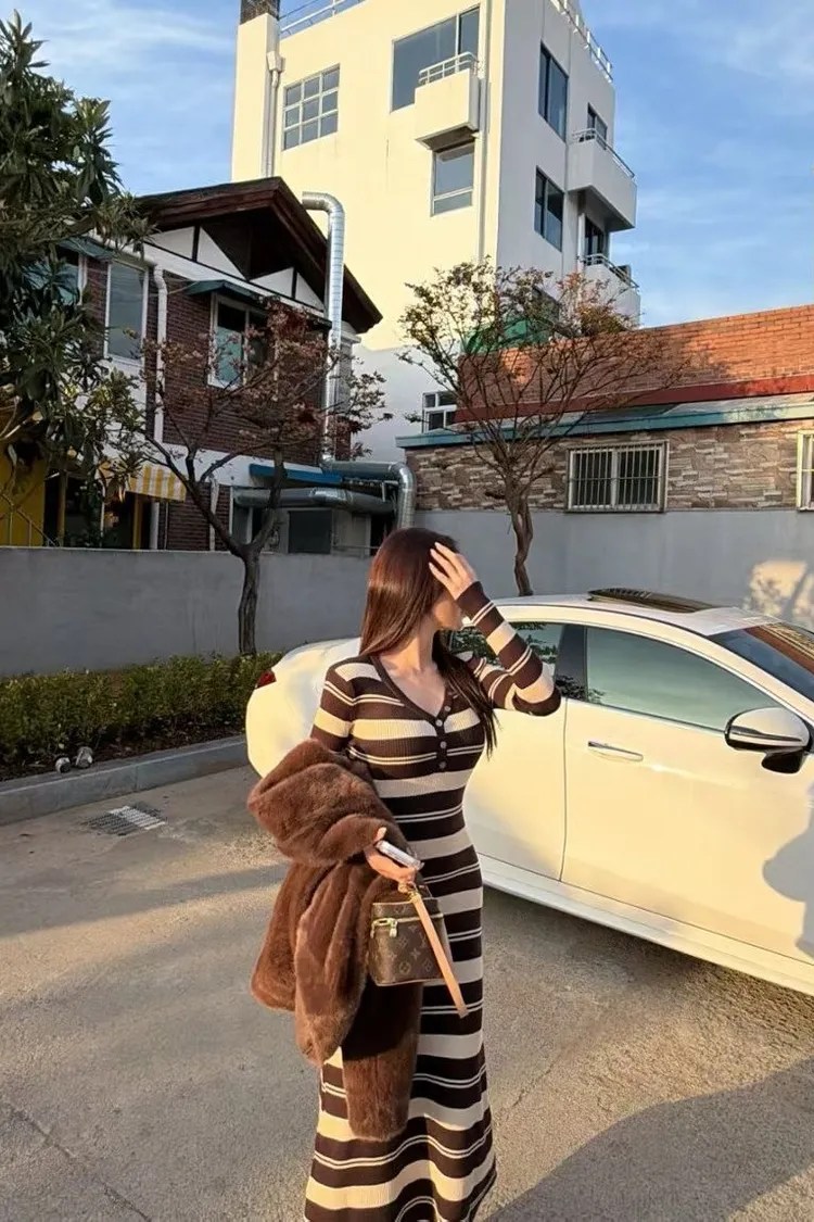 條紋針織連身長裙