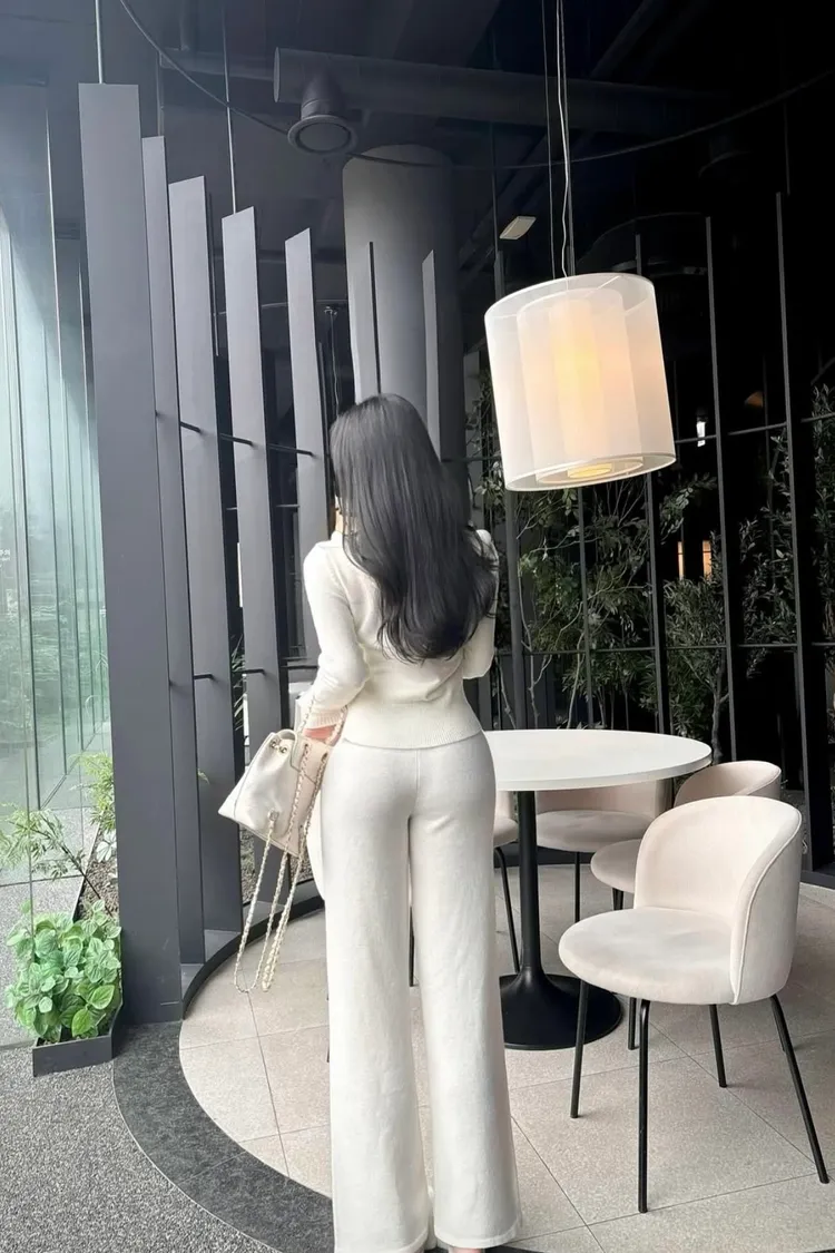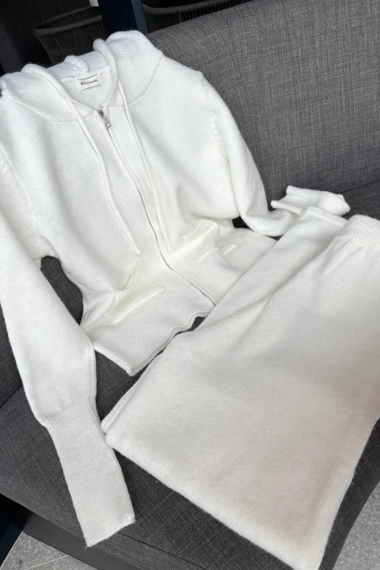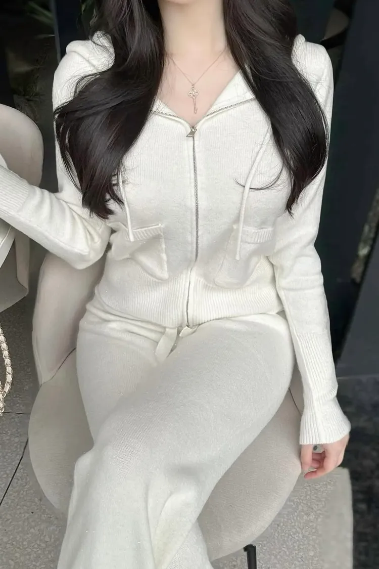 閃粉針織連帽外套+長褲
