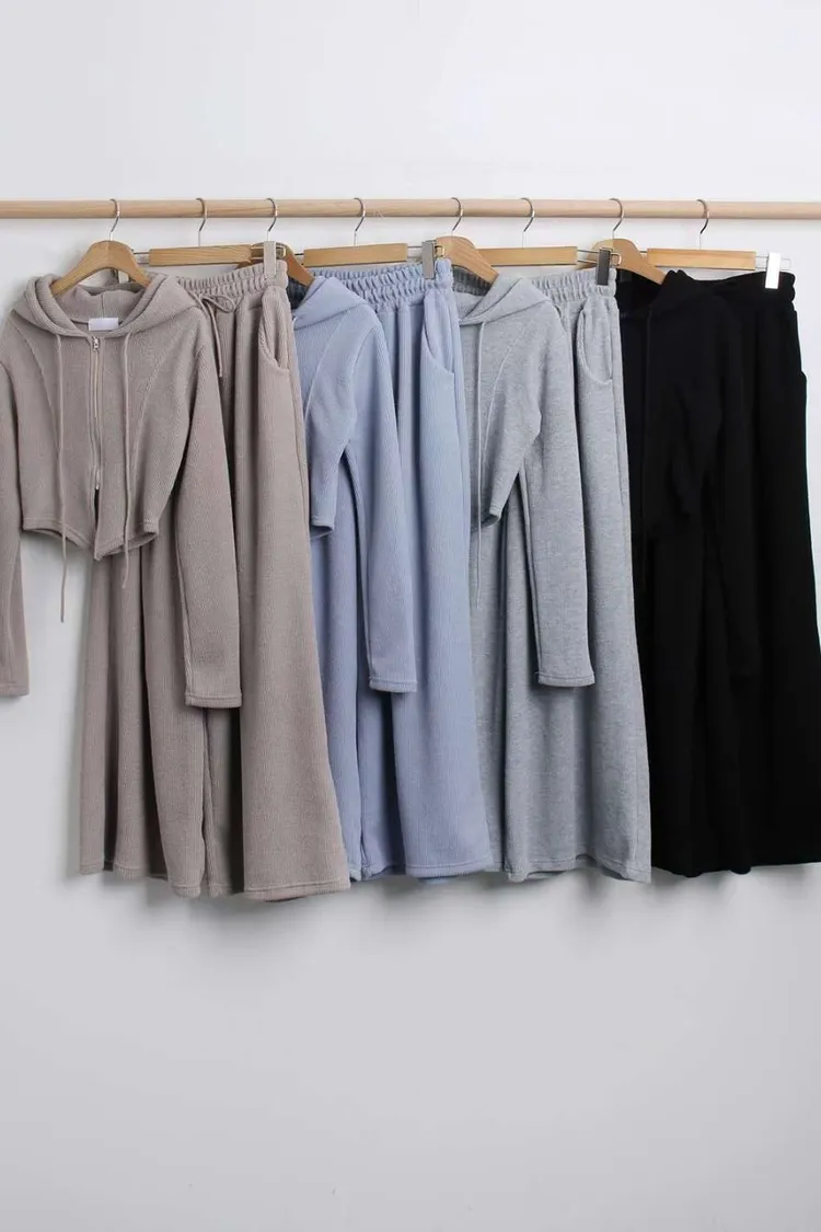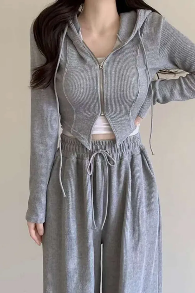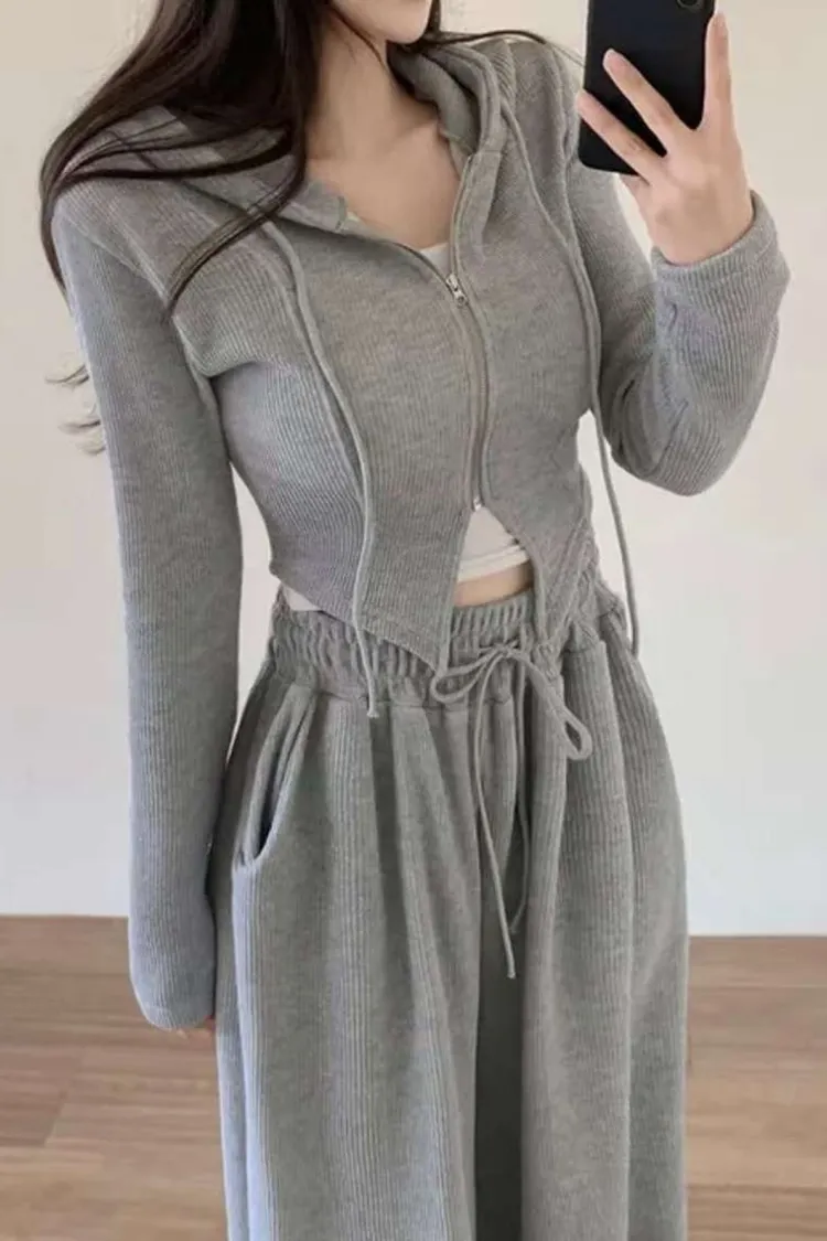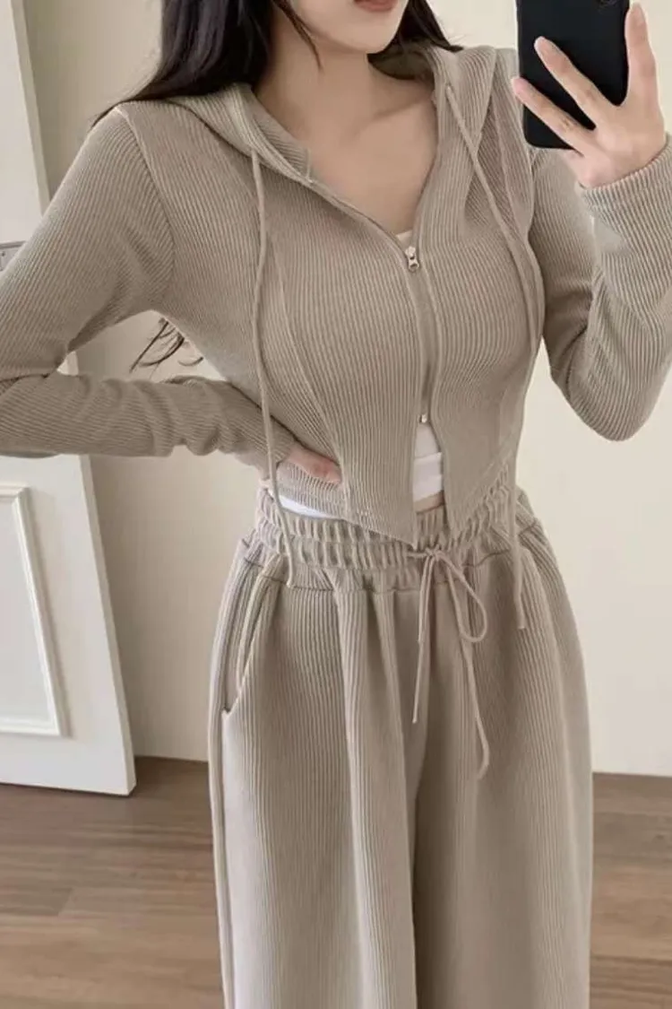 開衩連帽短版外套+寬褲