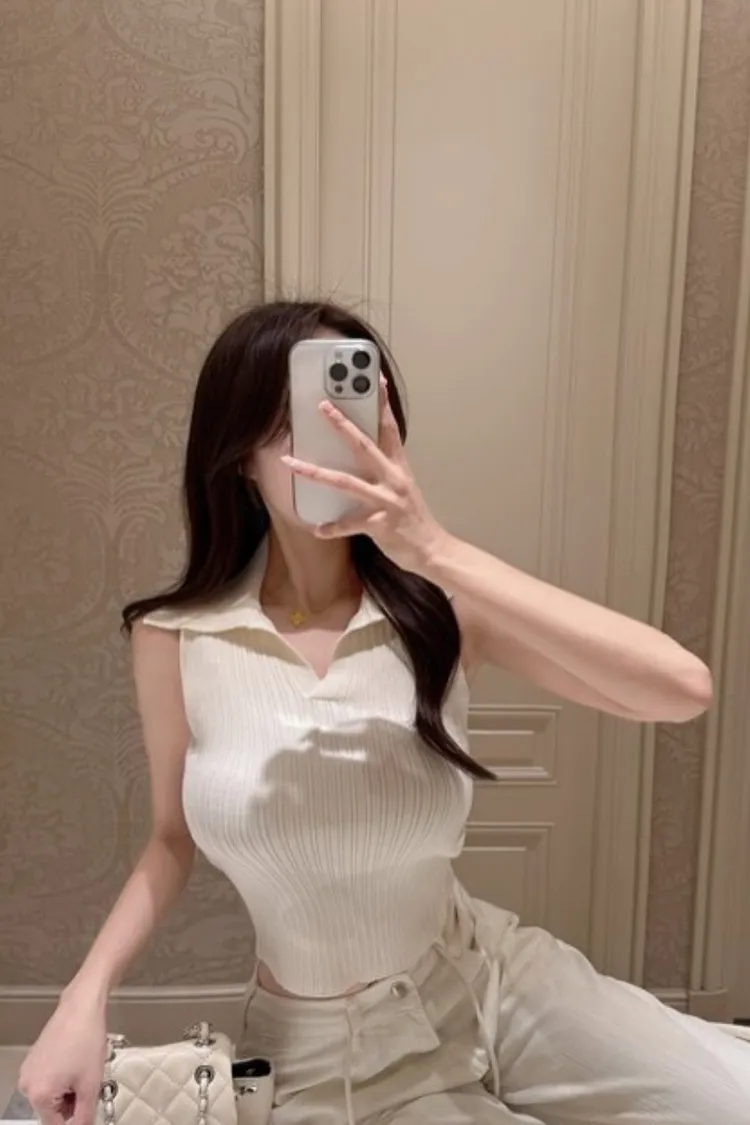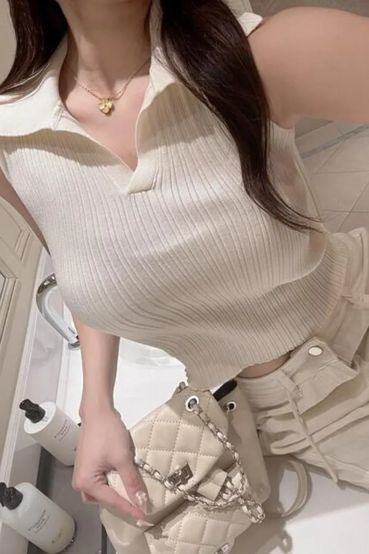 翻領無袖針織上衣