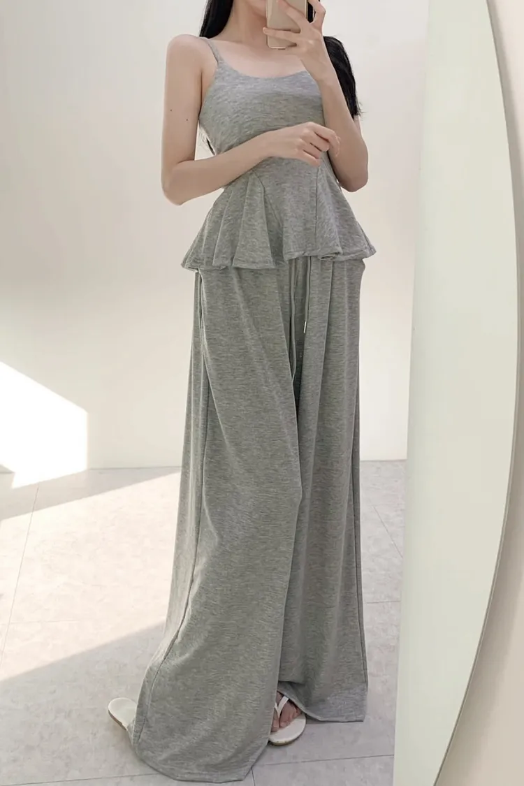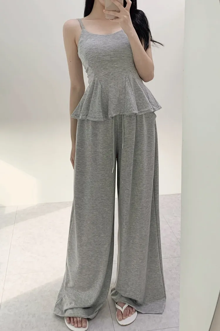 細肩荷葉背心套裝