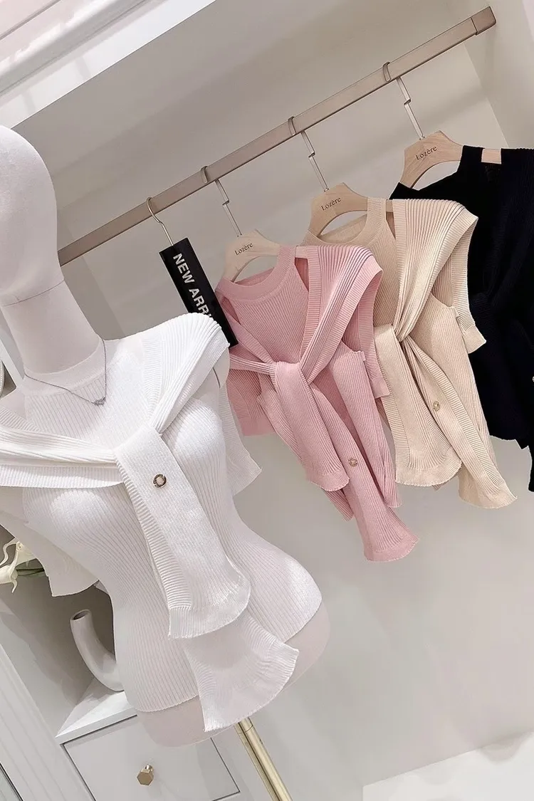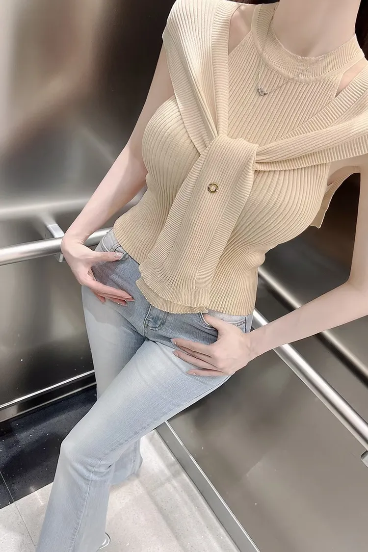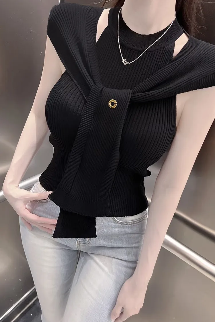 半高領削肩上衣+披肩
